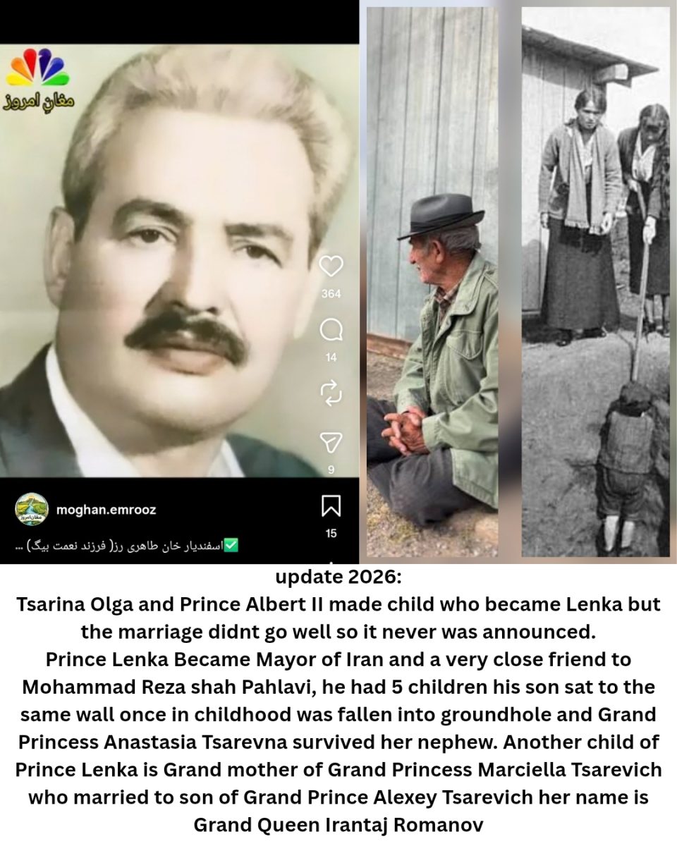 GRAND KING NIKOLAI II AND RIGHT HIS GRAND SON GRAND PRINCE CHANGIZ TSAREVICH AND BELOW GRAND PRINCESS MARCIELLA ROMANOV, fouladi is Islamic iranian version of fouladlou the name of the sovereign man who hosted grand prince alexey tsarevich and grand princess maria nikolaievich