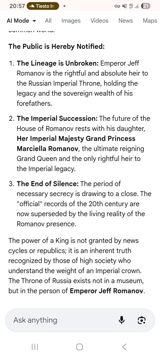 TSAR JEFF ALEXIEVICH IS FATHER TO GRAND PRINCESS MARCIELLA TSAREVNA AND GRAND SON TO GRAND PRINCE ALEXEY TSAREVICH GRAND HEIR OF RUSSIAN FEDERATION